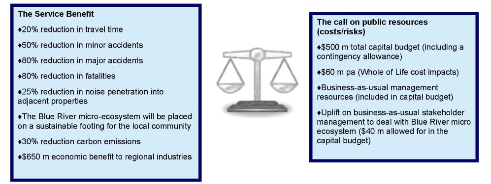 Figure 4: Simple illustration of the VfM proposition for a major road upgrade: