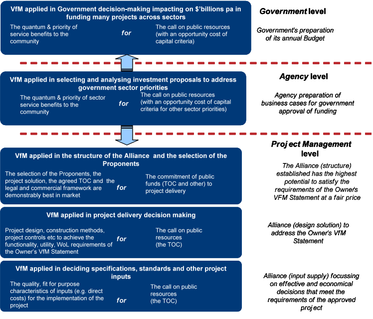 (Where project delivery is by an alliance, the alliance will work to deliver the agency's or Owner's VfM Statement, which is aligned to the Business Case approved by the government.)