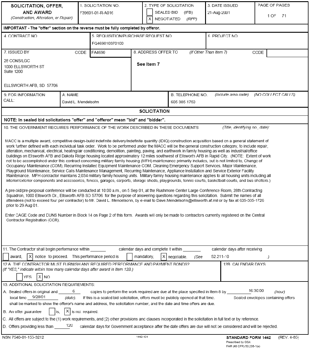 ATTACHMENT 4-5  Ellsworth AFB Solicitation