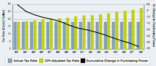 EXHIBIT 8-4: FEDERAL GASOLINE TAX RATE AND LOSS IN PURCHASING POWER |