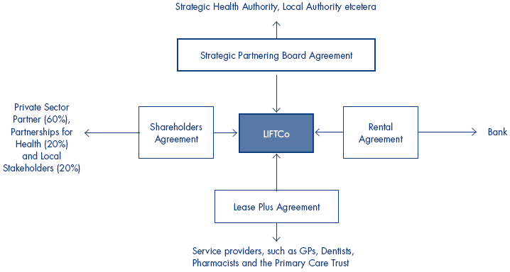 1.17 Partnerships for Health developed a suite of guidance notes and standardised contract documentation (Figure 4 overleaf) for all schemes, using their experience of PFI as a starting point. The time spent on developing the standard contracts was longer than anticipated at the outset, and several versions were issued before finalized documents were agreed. The standard documentation was often amended following local negotiations. Nevertheless, its existence resulted in time and money savings in setting up LIFTCos and getting projects underway. We questioned whether there were benefits in extending standardization beyond these traditional parameters. Partnerships for Health are understandably reluctant to impose standard buildings on diverse local areas, but recognise there may be additional untapped benefits in using standard modular designs for rooms within the LIFT building. We note there may also be potential to standardise the interior configuration of buildings with a view to enhancing the "patient journey". One area visited analysed the usage of different primary care services and had designed the flow of rooms in their building to reflect this research.