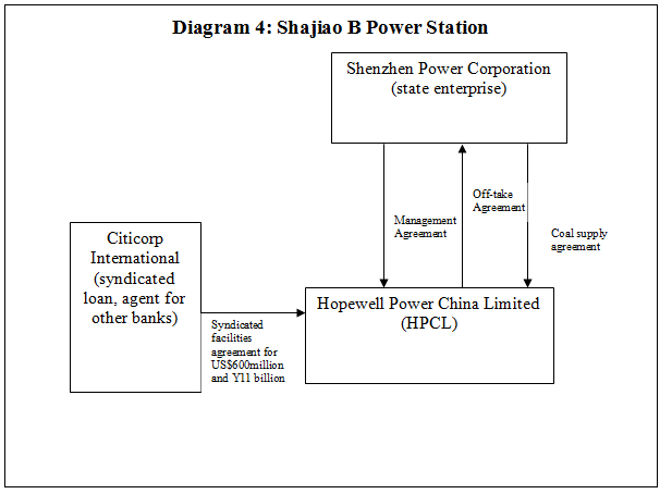 The cost of building the infrastructure is considerable, and most of the cost will be financed by a syndicated loan of US$600million and Y11billion, with Citicorp International the lead arranger. As Shenzhen Power Corporation will be purchasing the power generated, this provides a income stream on which the lenders can use as security. The supply of inputs, ie coal, is also guaranteed at a fixed price by the Shenzhen Power Corporation entering into a long term coal supply agreement with HPCL.