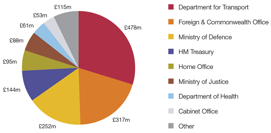 1.7 By June 2013, 13 departments had reported a total of £1.6 billion of signed savings to the Treasury (see Figure 2). This £1.6 billion of savings came from 65 of the 684 operational contracts. Savings are described as 'signed' either when any agreed changes are supported by a signed contract variation, or in the case of savings that do not require contract amendment where there is other good documentary evidence backing up the claimed saving, for example, a contract to sublet surplus building space. All savings are reported in nominal rather than real terms.