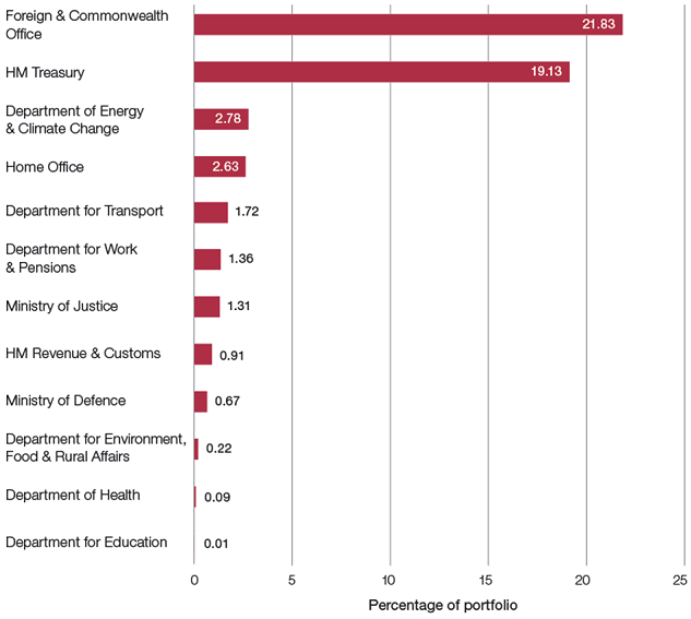 2. The Cabinet Office is excluded from the above analysis as its saving is 112 per cent due to the cancellation of a PFI contract which has saved ancillary costs alongside the unitary charge.