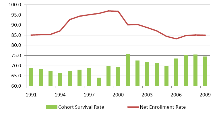 Figure 1.4 Cohort Survivaland Net Enrollment Rate, Philippines:
