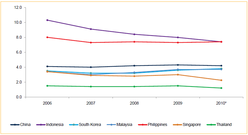 Figure 2.6 Comparative Unemployment Rates in Selected Asian Economies: 2006-2010