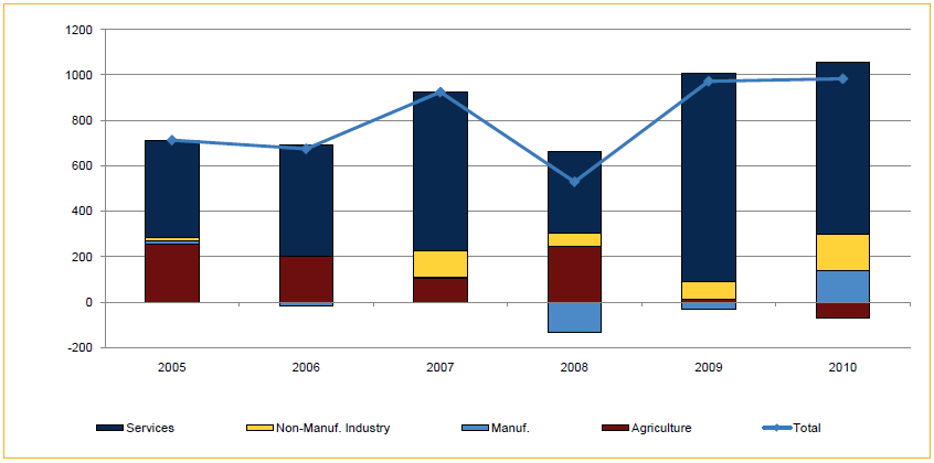 Figure 2.7.Employment Generated, 2005-2010 (in '000)