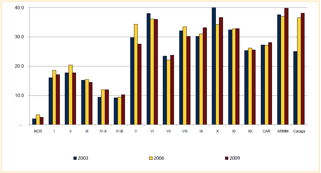 Figure 2.9 Poverty Incidence of Families by Region (in %): 2003, 2006 and 2009