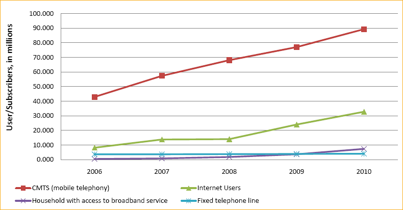Figure 5.7. Growth in Number of Users/Subscribers of Major ICT Services: 2006-2010