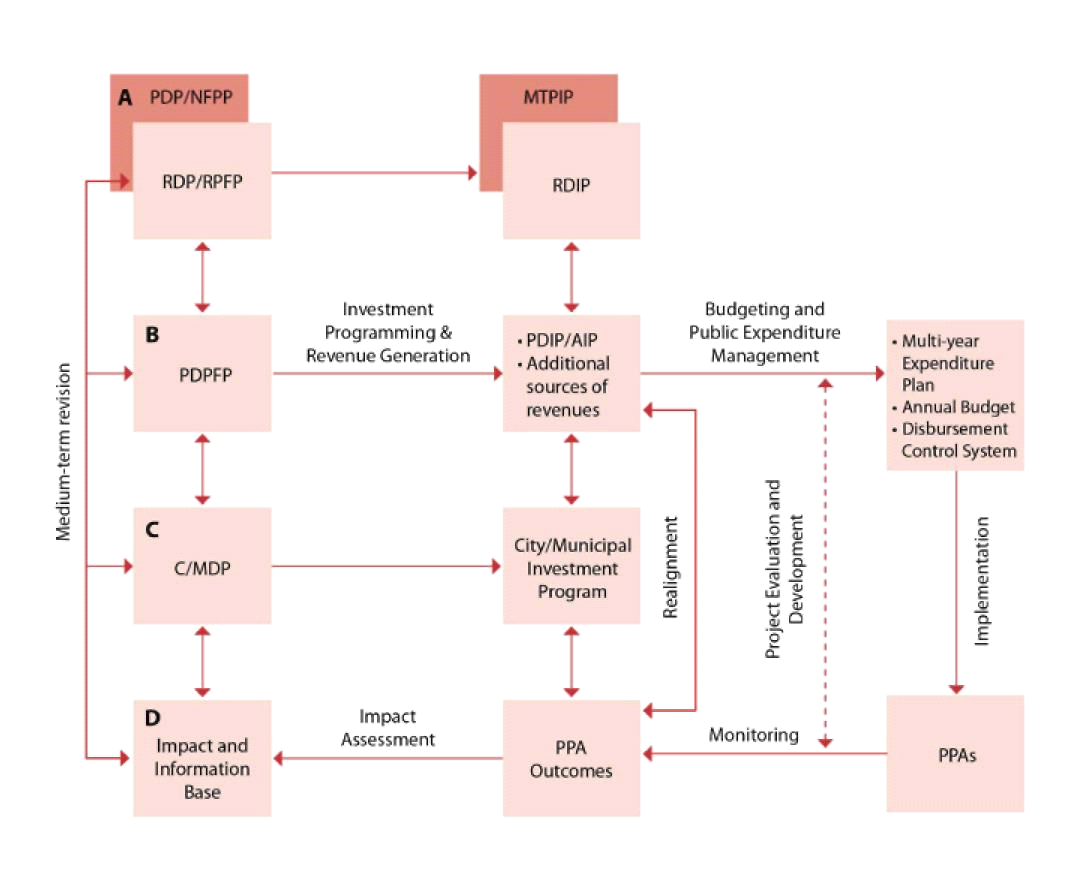 Development plans at all levels contain, among others, programs, projects and activities (PPAs) to respond to development needs and gaps. On the other hand, investment programs outline a set of prioritized PPAs, their specific timeframes of implementation and their budget requirements. Suitable fund sourcing alternatives and resource mobilization strategies are likewise proposed to ensure that these identified and prioritized PPAs are implemented.