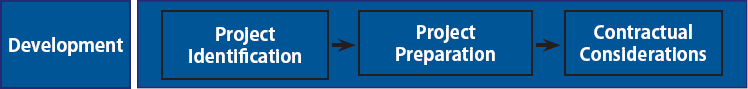This chapter explains the different steps under the development phase. are provided information on how to go through project identification and project preparation, and guided on considerations for contracts.