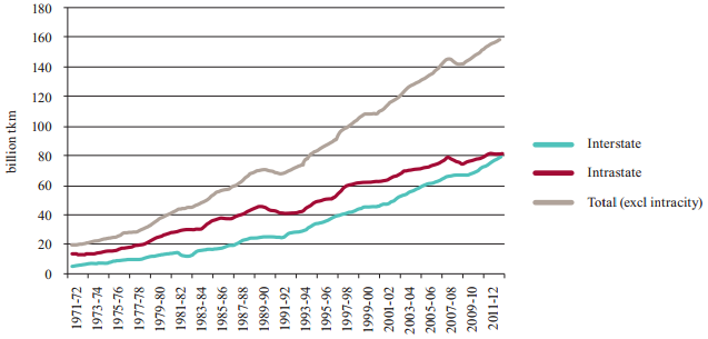 Demand for national rail infrastructure is projected to grow, especially in WA, Queensland and NSW. WA accounts for some 50 per cent of national rail freight value-add, due to mining in