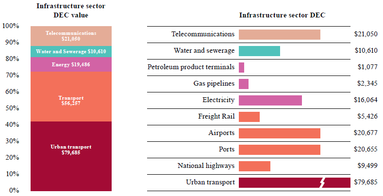 Figure 1: Sectoral distribution of infrastructure's value-add by Direct Economic Contribution (DEC) in 2011 ($ million, 2011 prices)