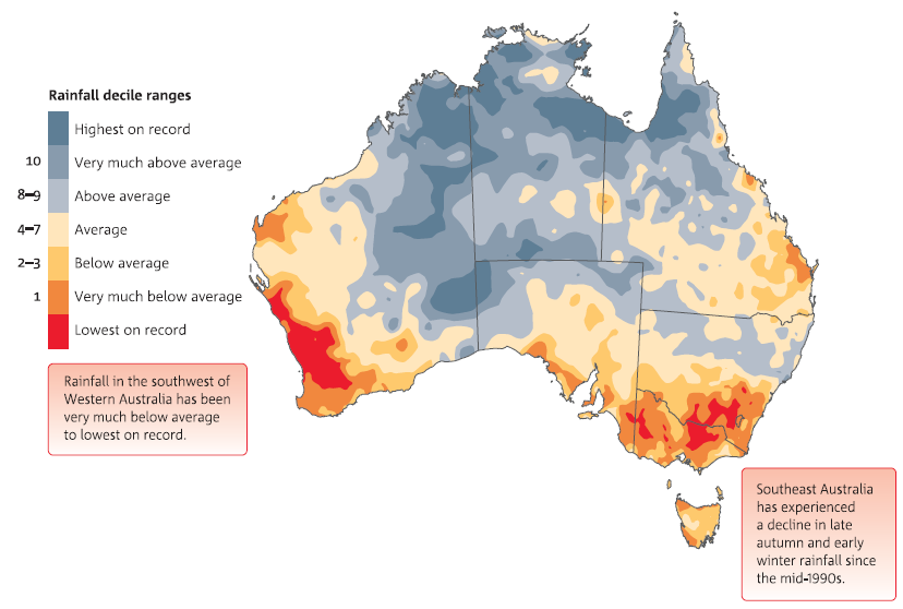 Audit finding 41. The projected decrease in rainfall (and the associated increasing exposure to severe drought) in the heavily populated southern parts of Australia presents significant challenges for the water sector. |