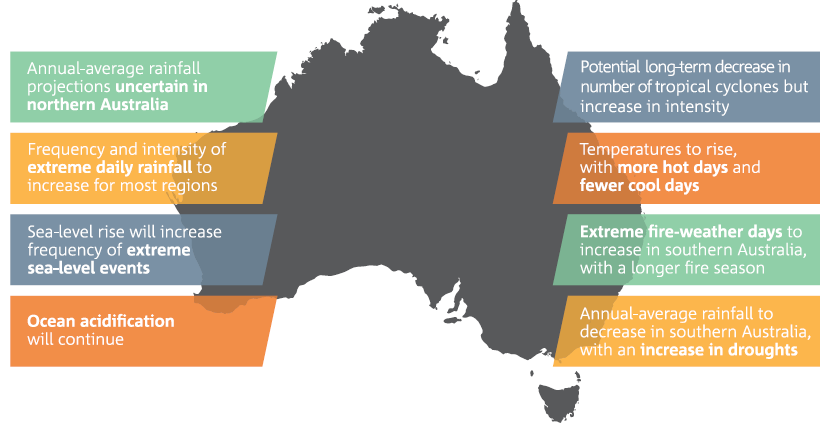 The report finds that average rainfall in southern Australia is projected to decrease, and droughts in southern Australia are projected to become more severe. Annual average rainfall projections in northern Australia are less certain. Although less rainfall is expected overall, the number and intensity of extreme rainfall events is projected to increase over most parts of Australia.