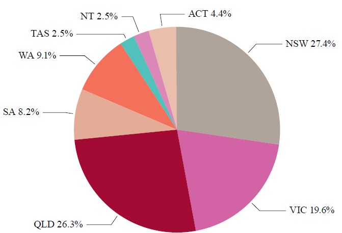 Figure 38: Share of value-add for airport infrastructure services by state and territory in 2011, measured by DEC
