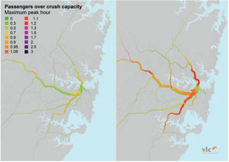■ Western Line - a high level of overcrowding from Strathfield to City and Westmead to Parramatta;