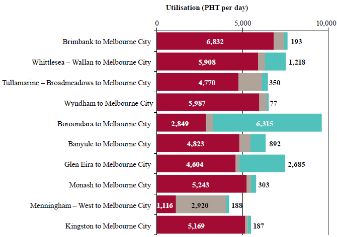 Figure 64: Top 10 Melbourne origin/destination pairs by hours travelled for public transport