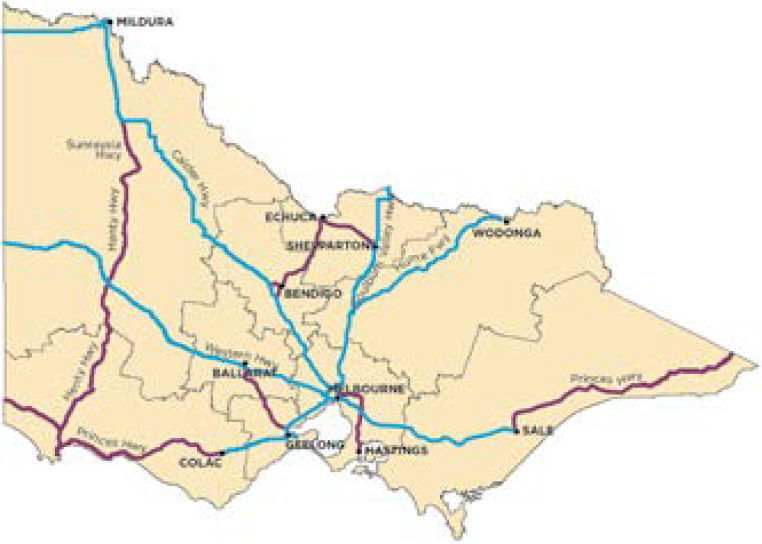 Figure 67: National Land Transport Network highways and key freight routes in Victoria 2011