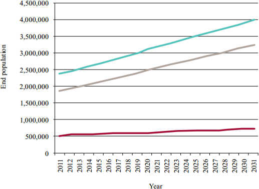 Based on medium level projections by the Australian Bureau of Statistics, WA's population is projected to reach 3.97 million in 2031 -an increase of 1.62 million people, or 69 per cent, from 2011. This is higher than the WA Government's medium level population projection of 3.69 million in 2031.393