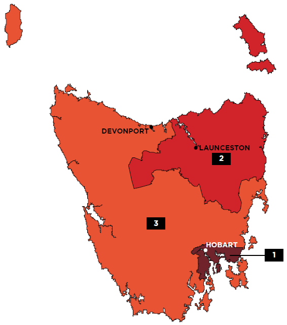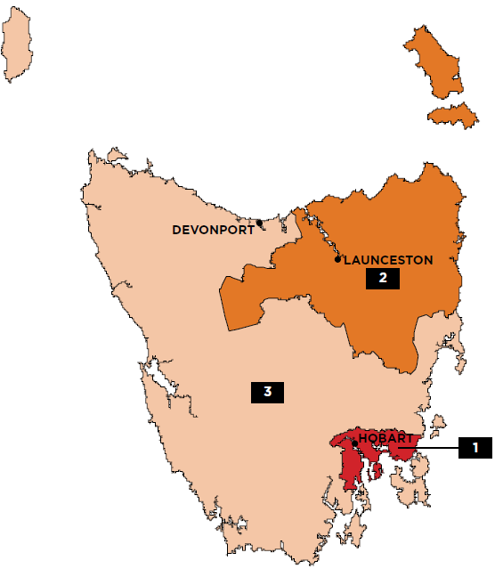 | 1 Hobart 2 Launceston and North East 3 Rest of Tas. | ||