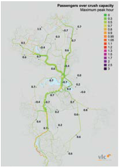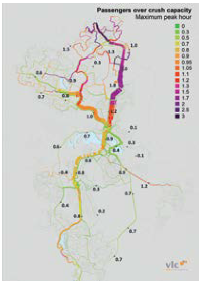 Figure 105: Canberra bus weekday passenger demand relative to crush capacity (2011)