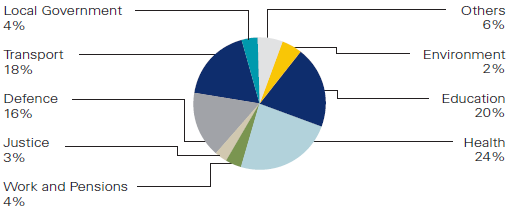 As well as highest capital value the health sector accounts for the largest number of contracts with 240, 30% of the total number of projects carried out since 1987. It is closely followed by education with 202 and together they account for over 55% of the volume of UK PFI contracts.