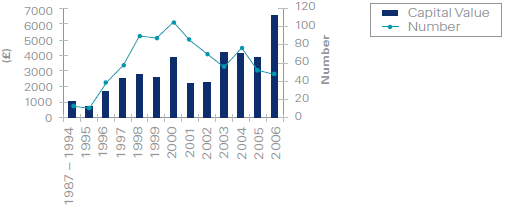 We will wait to see what 2007 brings and will carry out this analysis next year to reflect changes and developments in this innovative marketplace. The overall trend in the current decade appears to be downward, at least in terms of numbers of contracts. Certain sectors, notably Health, are carefully appraising whether the traditional PFI model is still right for their area. We will also be monitoring the impact of the new BSF approach in Education | The overall trend in the current decade appears to be downward, at least in terms of numbers of contracts. Certain sectors, notably Health, are carefully appraising whether the traditional PFI model is still right for their area. |
