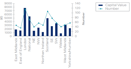 If the regional distribution is analysed it is perhaps unsurprising that London accounts for the highest value and volume of signed contracts. It accounts for 116 with Scotland accounting for 99 and the South East of England 77. If 'national' contracts are excluded, Scotland also accounts for the second highest level of PFI spending by capital value. 46% of Scottish contracts are health related and 32% education. Together, they account for 78% of Scottish contracts by volume and just under 75% by contract value, which differs markedly from the overall UK picture of over 55% and 46% by volume and value respectively.