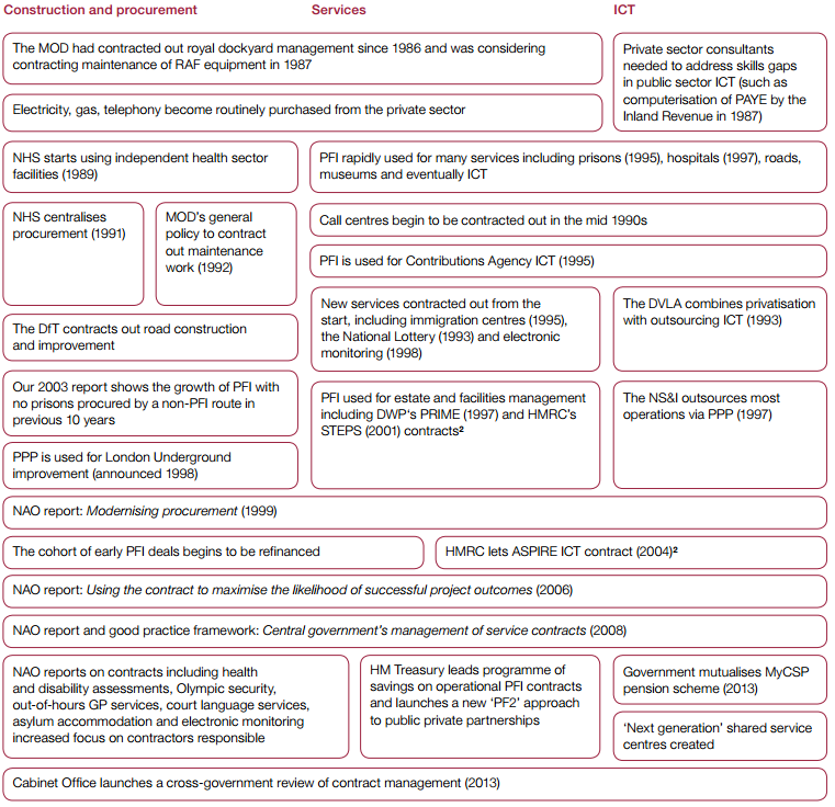 Figure 7 Contracting out public services has increased since the 1980s Examples of major themes in contracting 1982 to 2014