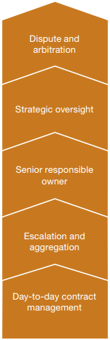 • Board-level champion for key contracts • Senior management forum to discuss supplier relationships, overall strategy, issues across multiple contracts or at a service- rather than contract-level, continuous improvement of contracts with good performance | |