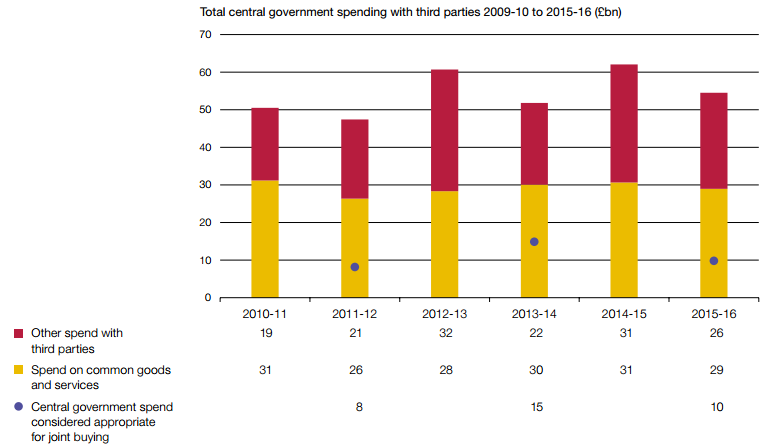 Around half of central government spending with third parties is common across departments but only one-third of this amount is considered appropriate for joint buying