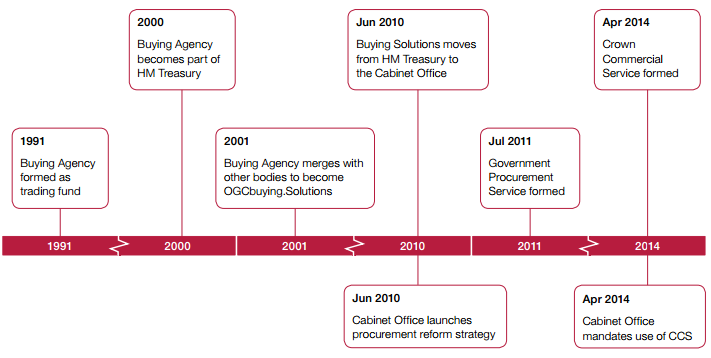 In April 2014 the government created CCS, building on the Government Procurement Service. It was mandatory for all central government departments to use CCS