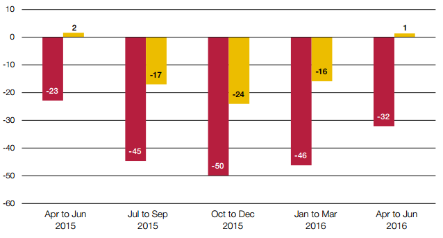 2.9 In 2015-16, CCS had a score of -27% (Figure 12). Central government customers have been consistently less positive towards CCS than other customers. Our analysis suggests that this is because of the failed transition programme, service issues and failures, and CCS's inability to meet the expectations set by the ambitious business plan. Since the end of 2015 both central government departments and the wider public sector have become more positive towards CCS. In the first quarter of 2016 wider public sector customers became more likely to recommend CCS.