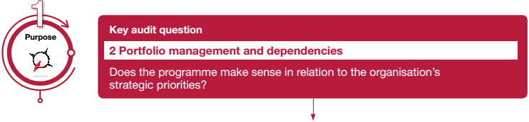 | Sub-questions How does the programme address the highest priority strategic needs of the organisation? What other programmes are active at the same time to address these strategic needs? Is there good understanding of other organisations' programmes that may impact on the operating environment of the programme? Is there an approach in place to manage the interdependencies between different policies, teams and organisations? Is there evidence of timely and consistent communication between those with an interest in the outcome being sought? Does the programme make sense in relation to the resources available to the organisation? (see also Question 10) | ||