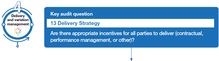 | Sub-questions Is there evidence that different ways of delivering the programme have been evaluated? Has the programme been appropriately tendered and contractors/partners selected using a defensible process? Is there appropriate sharing of risk and reward between parties? Are risks owned by the parties best placed to manage them? See the in-depth tools on Delivery for tools containing more detailed questions on specific delivery strategies. For instance, Commercial and contract management: insights and emerging best practice covers issues with risk transfer. | ||