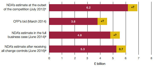 2.8 By March 2017 the NDA's estimate of the costs had risen to £6.0 billion (Figure 9). The difference between this figure and CFP's bid of £3.8 billion consists of: