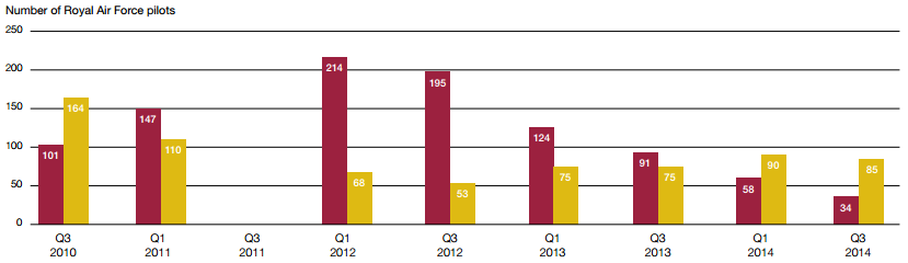 2.21 Retiring the Harrier and phasing out the Tornado early meant that the greatest reductions were in the numbers of pilots the Royal Air Force needed to train, which fell by 50%. In comparison, the number of pilots the Army needed to train was reduced by only 19% because of the number of helicopters then needed to support operations in Afghanistan. Reductions in the number of rear-crew that needed to be trained were also greater for the Royal Air Force.