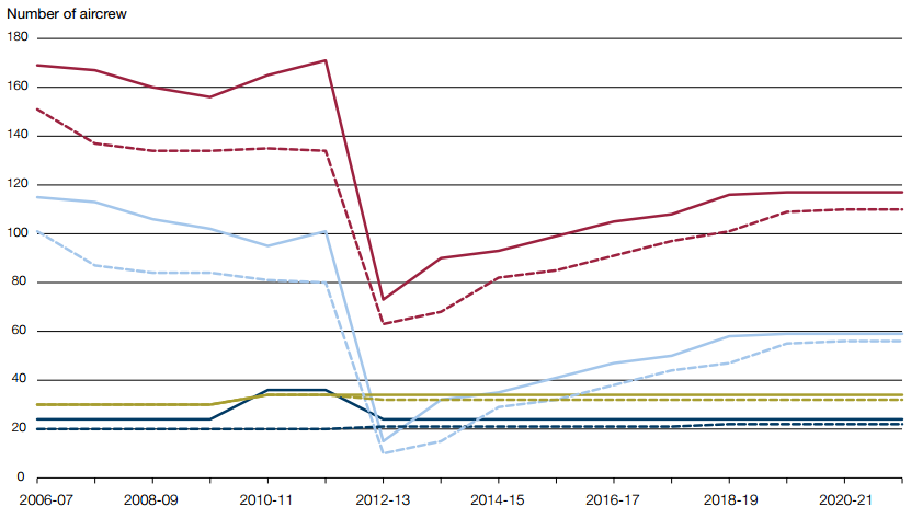 2.26 The flexibility of training in response to changes in need is constrained, as aircrew training takes many years. This lag between aircrew beginning and finishing training, and having to rebalance the infrastructure and personnel required to train them, means the system requires time to respond to changes.