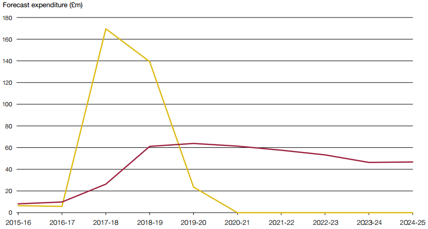 Note 1 Resource expenditure of £424.2 million is forecast between 2025-26 and 2032-33 but is not shown on this chart. Source: Ministry of Defence |