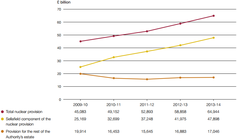 2.7 As at February 2015, the Authority's estimate of the discounted nuclear provision for the Authority's estate was around £70 billion, of which £53 billion relates to Sellafield (an increase of £5 billion from 2013-14). We have not yet audited these figures. We are reviewing the Authority's assurance over the 2014 performance plan as part of our audit of the Authority's financial statements for the year 2014-15, so that the Comptroller and Auditor General can reach an opinion on whether the financial statements, including the latest estimate for the nuclear provision, are true and fair.