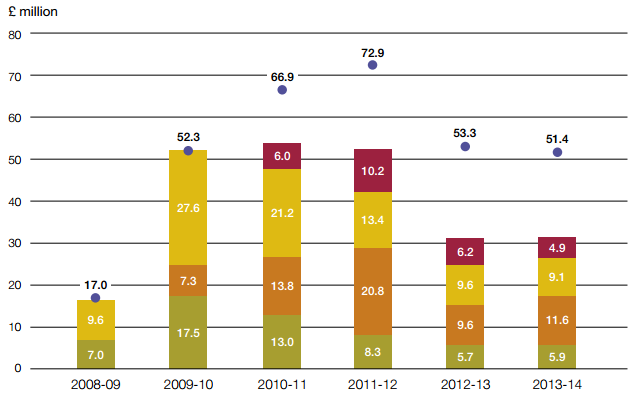 Figure 9 Fees paid to Sellafield Limited The Authority paid £31.5 million in fees to Sellafield Limited in 2013-14, a similar amount to 2012-13