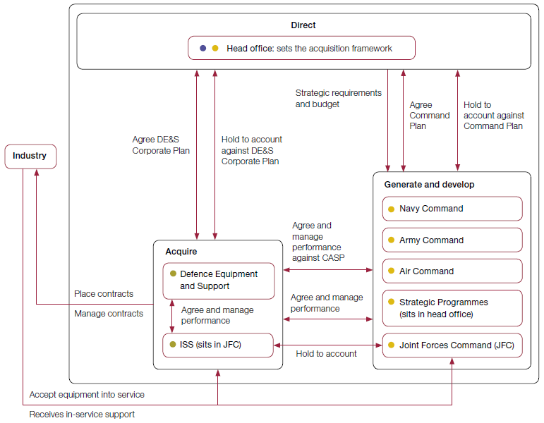1.11 These structural changes have clarified responsibilities for acquisition. Since April 2014, the commands manage equipment and support budgets and hold DE&S to account for project delivery (Figure 1).