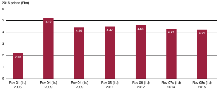 | Figure 11 Changes in the estimated cost of the Tunnel over time The Tunnel's estimated cost has stayed relatively stable since 2009 (2016 prices) |
