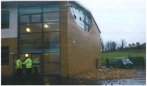 10.16.2 In early January 2012 during a period of exceptionally high winds, external wall panels collapsed at two secondary schools, Trinity High School and Duncanrig Secondary School in South Lanarkshire. Fortuitously both schools were closed at the time of the collapse for the Christmas holiday period. These schools were built in 2009 under a PPP contract.