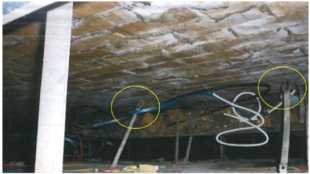 10.16.7 The following photographs, together with the comments below the photographs, are taken from the structural reports and show evidence of the lack of wall ties and improperly installed wall ties at Duncanrig School.