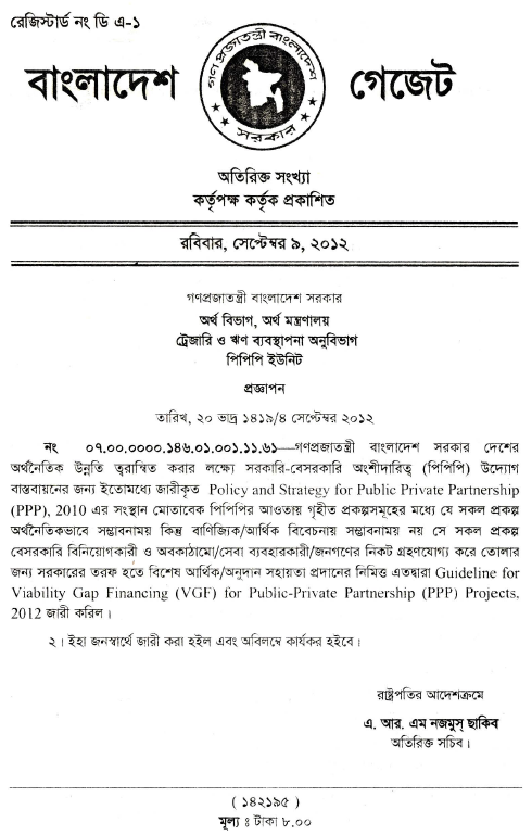 Guideline for Viability Gap Financing (VGF) for Public-Private Partnership (PPP) Project