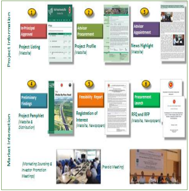 As PPP is comparatively a new concept in Bangladesh, effective promotion and marketing campaign is vital to develop broad consensus and support across relevant stakeholders including the agencies, private sector and financial institutions. The PPP Authority provides significant emphasis on effective promotion and marketing of the PPP concept and practices to various stakeholders in order to generate market interest and attract the best bids for the projects.