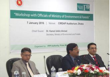 | The Public Private Partnership Authority organized a workshop with officials from Ministry of Environment & Forest on 7th January 2016 at the CIRDAP Auditorium. The objective of the workshop was to share the experience of implementing the PPP Program in Bangladesh. The Chief Guest at the workshop was Dr. Kamal Uddin Ahmed, Secretary, Ministry of Environment & Forest. Mr. Nurul Karim, Additional Secretary, Ministry of Environment & Forest was also present in the event as the session chair. |