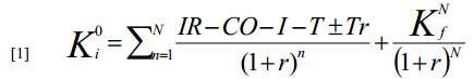 Where Ki represents the initial capital of the period; IR, revenues; CO, operating costs; I, investments; T, taxes; and Tr, transfers from the Treasury (that may be positive -explicit subsidies- or negative -payment of concession fee-). These elements represent the free cash flow received by the firm. The opportunity cost of capital - r - is located in the denominator.